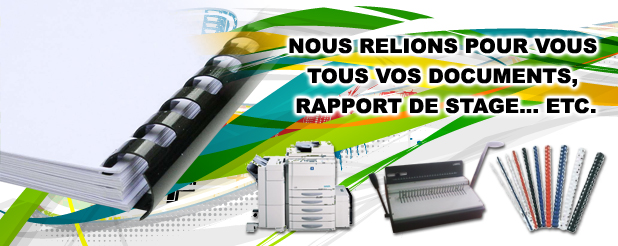 Un rapport de stage, un mémoire à imprimer ? Nous l'imprimerons et nous le relierons pour vous.