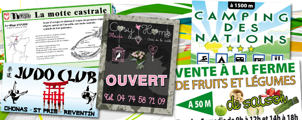 enseignes & banderoles publicitaires, adhésifs (habillage de véhicules), affichages rétro éclairés, PLV, emballages, textiles et même vos poubelles,